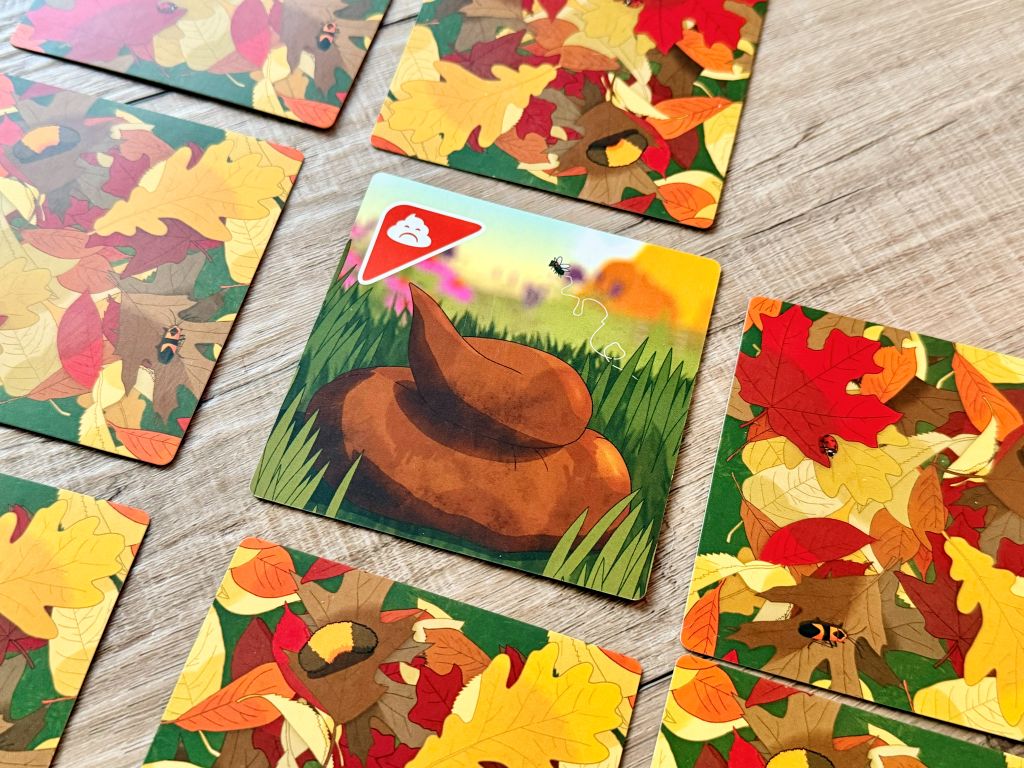 Puppies or Poop is silly fun. It plays fast, keeps turns snappy, and holds everyone’s attention. It reminds me of the memory games I played with my kids when they were little. You want to hide Puppies in the Yard so you can find them later, while placing Poop cards where you’ll remember to avoid them.